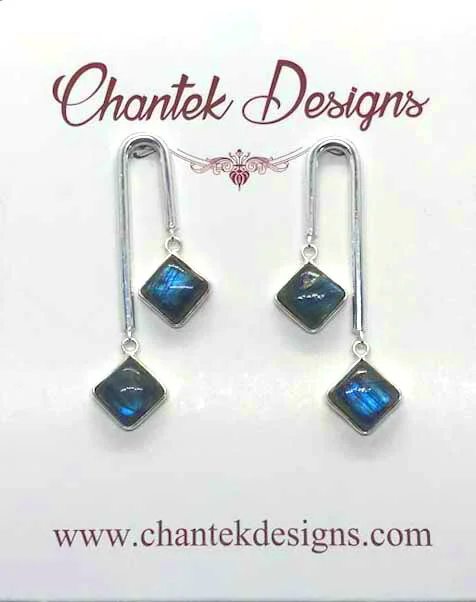 Labradorite and Sterling Silver earrings handcrafted in India.